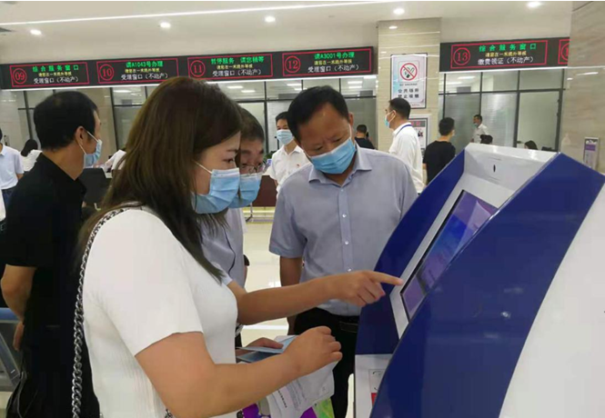 谢彦涛认真查看不动产专区各窗口近期工作情况,详细询问了一窗受理、企业绿色通道、上门服务、信息自助查询等便民利企措施的执行情况,现场查验了自助查询设备,与正在办事的群众交谈,深入了解群众“急、难、愁、盼”问题。