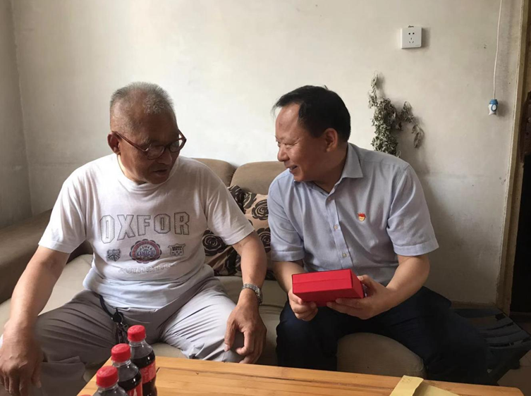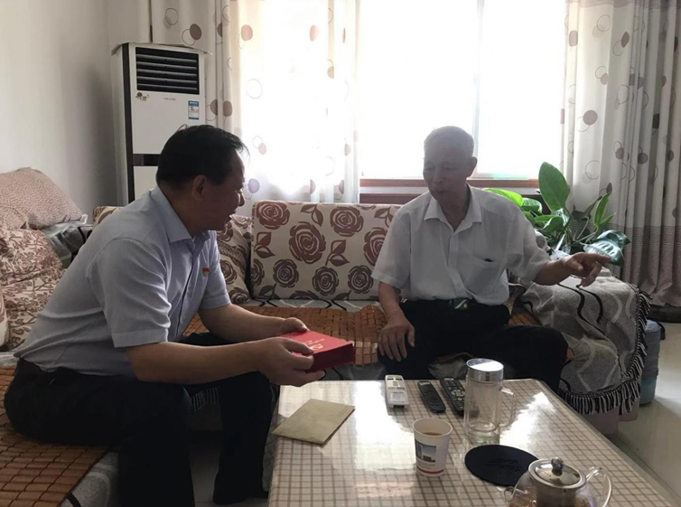 在中国共产党百年华诞到来之际,为了传递党的温暖,进一步增强老党员的荣誉感、归属感和使命感,6月29日,市政府副秘书长、中心党组书记、主任谢彦涛带领中心领导班子成员走访慰问老党员,为他们送上“光荣在党50年”纪念章和慰问金,同时送去党和政府的诚挚问候和崇高敬意。