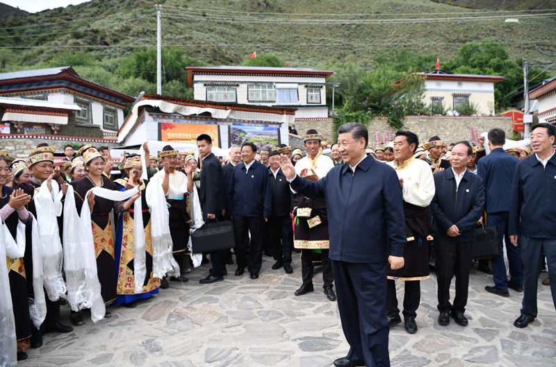7月21日至23日,习近平在西藏自治区党委书记吴英杰、自治区政府主席齐扎拉陪同下,先后来到林芝、拉萨等地,深入农村、城市公园、铁路枢纽、宗教场所、文化街区等看望慰问各族干部群众。