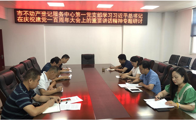市不动产登记服务中心第一党支部组织习近平总书记在庆祝中国共产党成立100周年大会上的重要讲话精神专题研讨