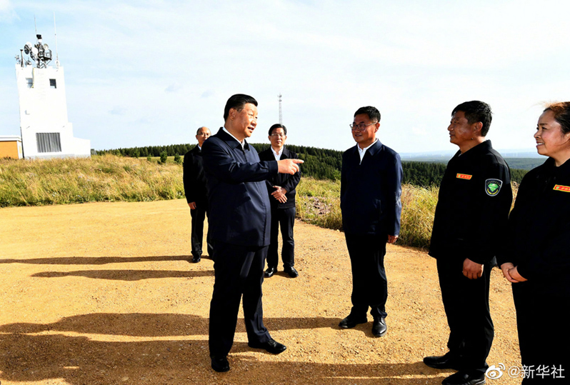 23日,习近平总书记来到河北省塞罕坝机械林场月亮山,察看林场自然风貌,听取河北统筹推进山水林田湖草沙系统治理和林场管护情况介绍,看望护林员。随后,习近平来到尚海纪念林,实地察看林木长势,了解林场弘扬塞罕坝精神、推动高质量发展等情况。(文字记者张晓松、朱基钗 摄影记者:李学仁、谢环驰、申宏)