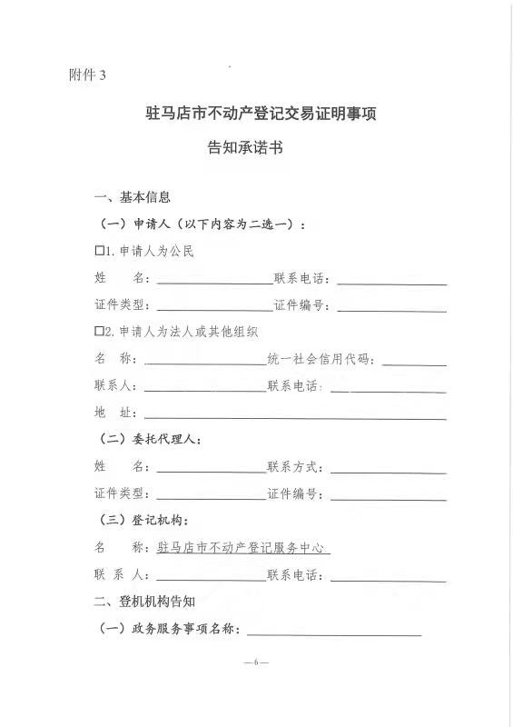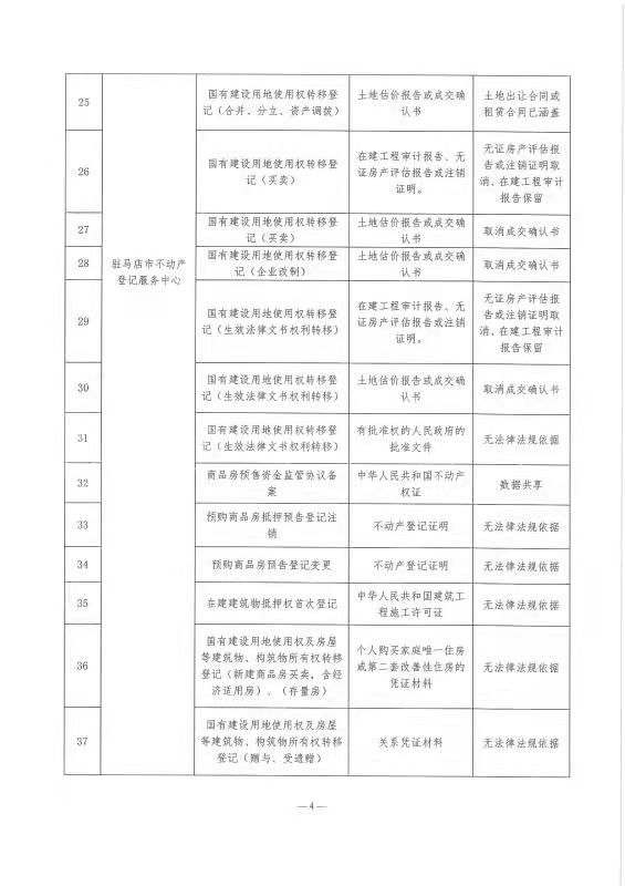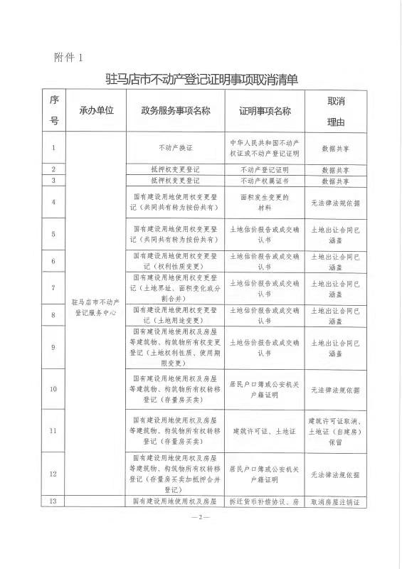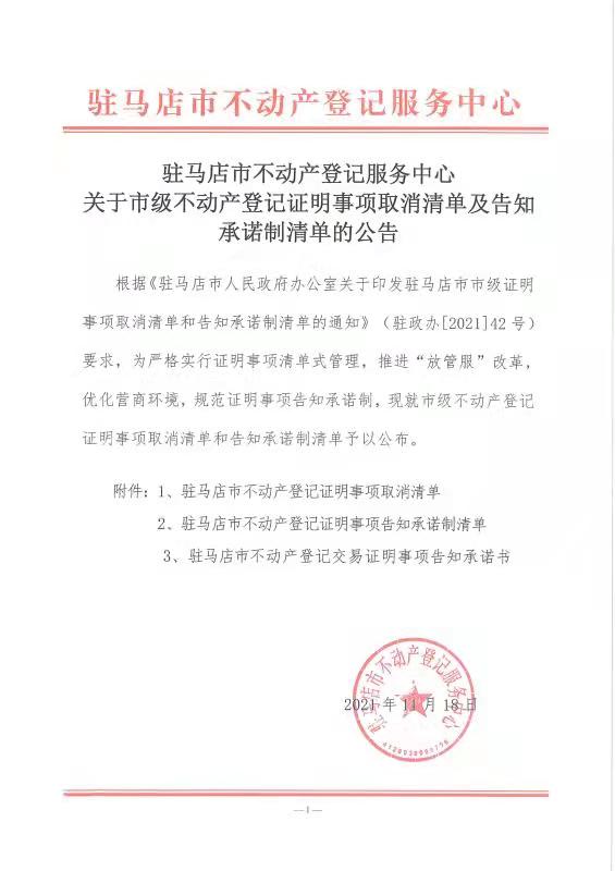 驻马店市不动产登记服务中心关于市级不动产登记证明事项取消清单及告知承诺制清单的公告