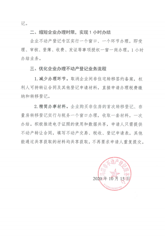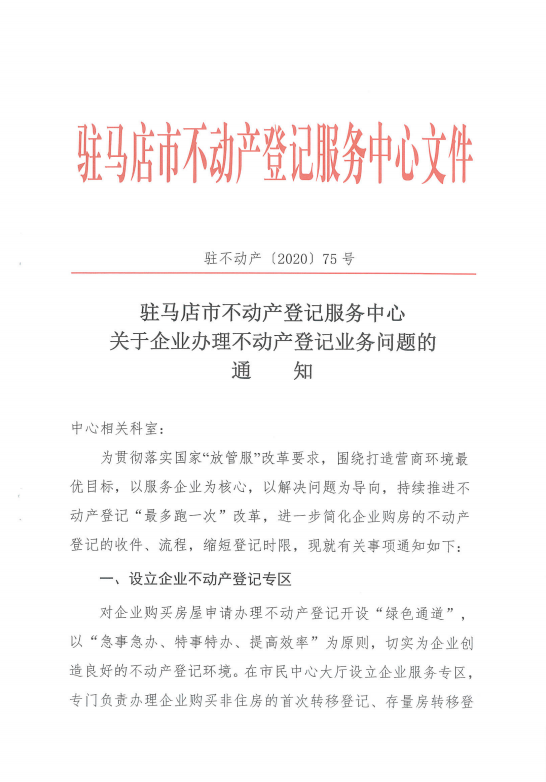 驻马店市不动产登记服务中心关于企业办理不动产登记业务问题的通知