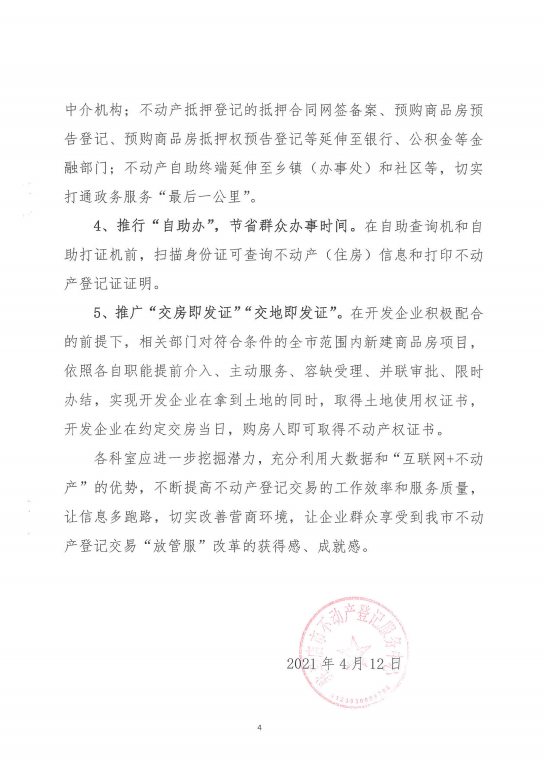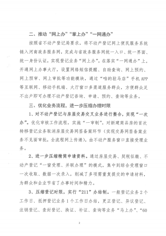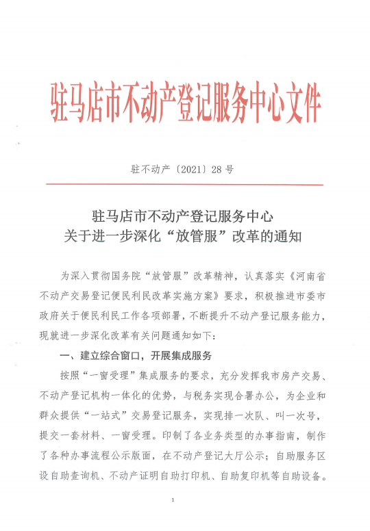 驻马店市不动产登记服务中心关于进一步深化“放管服”改革的通知