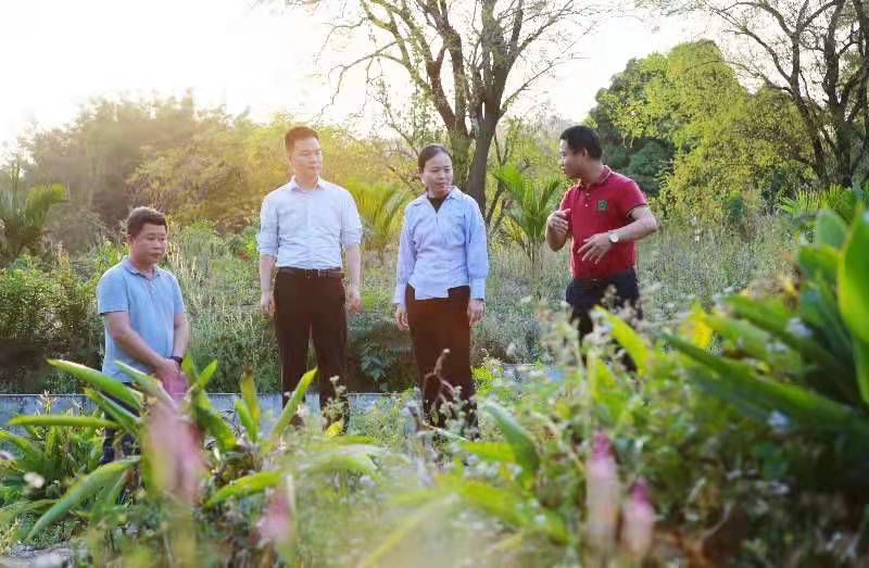图为吴烨(右二)正在儋州市某生活污水治理项目场地开展监督检查。