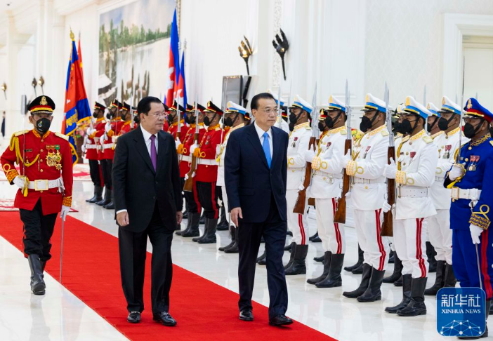 李克强表示,中柬传统友谊深厚,拥有高度政治互信,各领域务实合作成果丰硕。习近平主席2016年成功访问柬埔寨,2020年为莫尼列太后颁授“友谊勋章”,为两国友好再续新的篇章。首相先生是新冠肺炎疫情突发之际首位访华的外国领导人,给中国人民留下深刻印象。疫情发生近三年来,我首次出访即到金边出席东亚合作领导人系列会议并正式访问柬埔寨,感到非常高兴。中方祝贺柬经济社会取得新的发展。中方一向主张大小国家一律平等,各国都遵守联合国宪章宗旨原则,支持柬方走符合本国国情的发展道路,支持柬在国际和地区舞台发挥更加重要的作用,愿同柬方密切高层交往与沟通,在涉及彼此核心利益和重大关切问题上相互支持,推动中柬全面战略合作伙伴关系持续健康发展,更好造福两国人民。