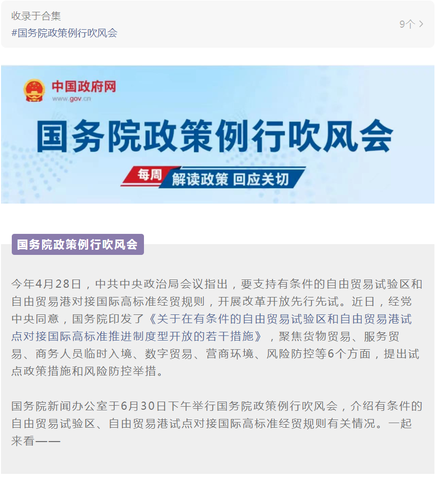 《若干措施》对接国际高标准经贸规则,聚焦知识产权、竞争政策、政府采购、环境保护等领域,提升便利化,增加透明度,进一步深化改革,着力营造公平透明、可预期的营商环境。