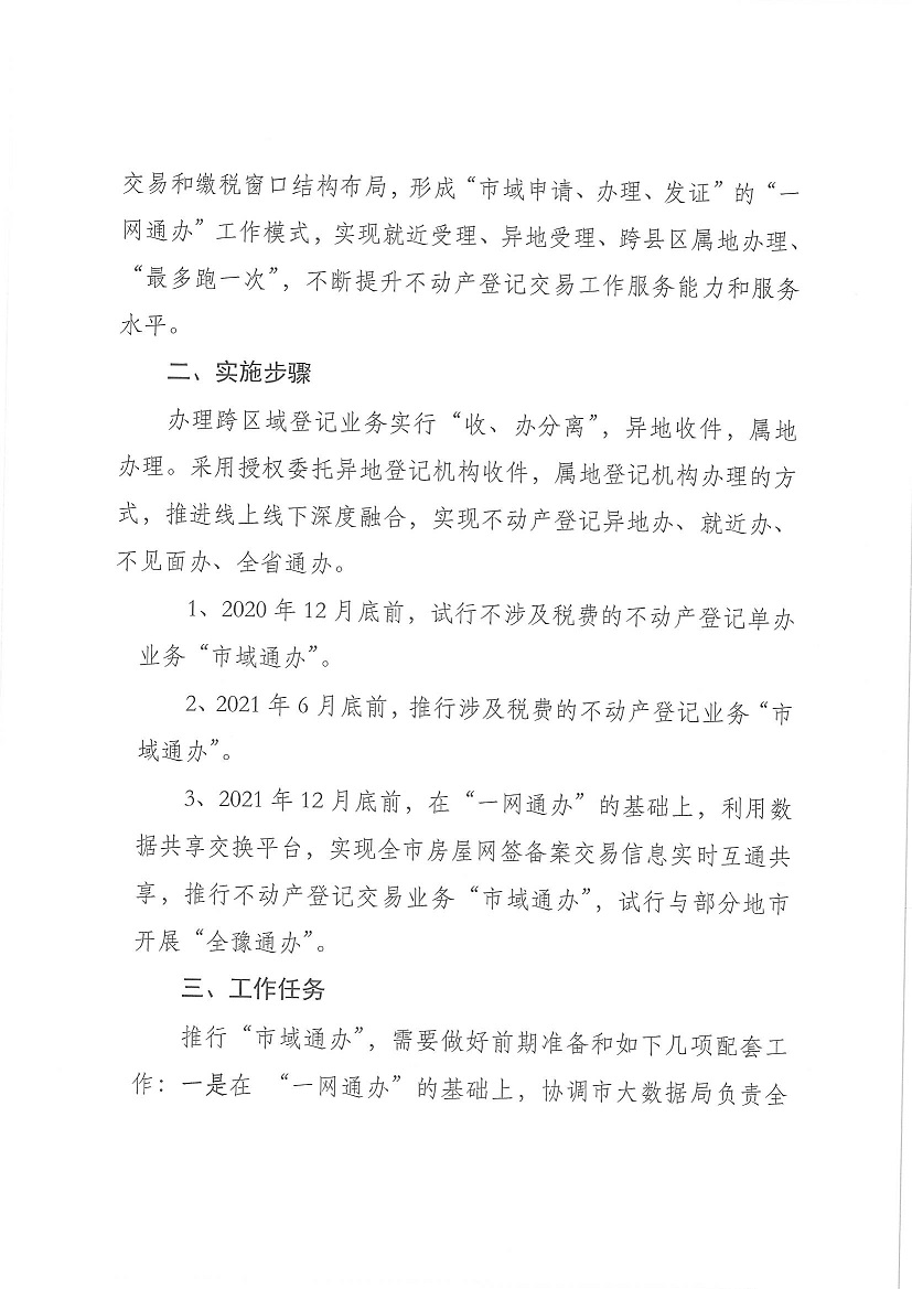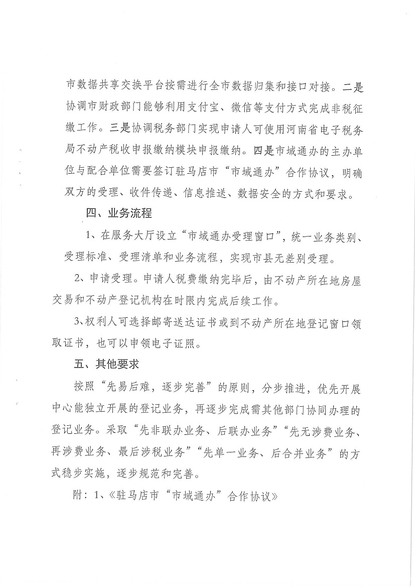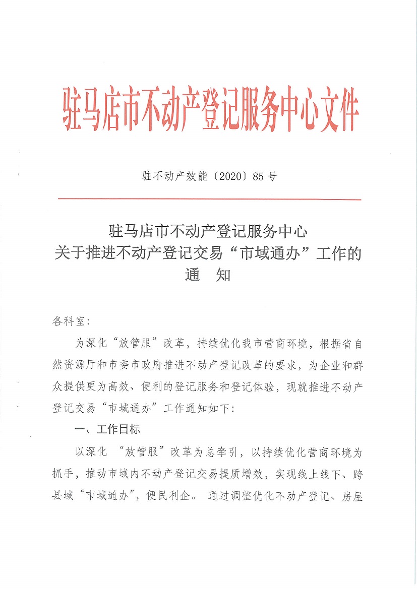 驻马店市不动产登记服务中心关于推进不动产登记交易“市域通办”工作的通知