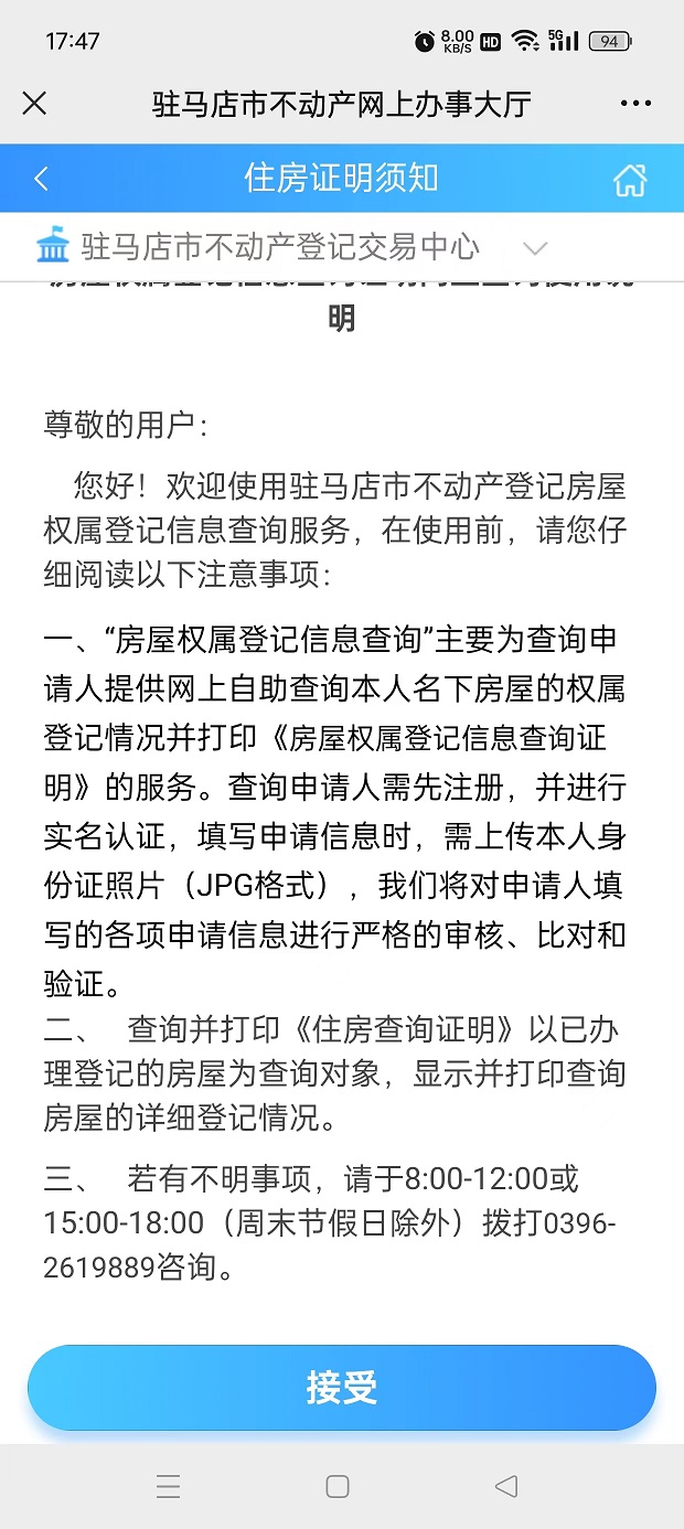 微信关注“驻马店市不动产登记交易中心”微信公众号