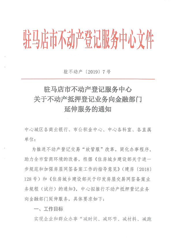 关于不动产抵押登记业务向金融部门延伸服务的通知
