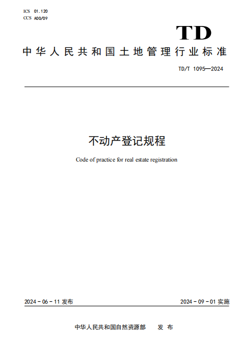 《不动产登记规程》(中华人民共和国土地管理行业标准TD/T 1095—2024)