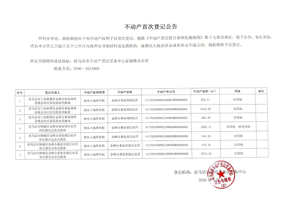 不动产首次登记公告