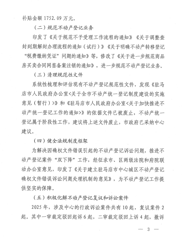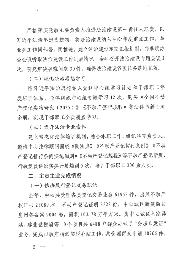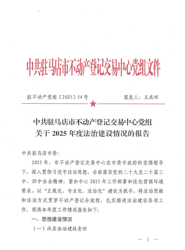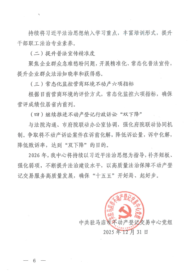 驻马店市不动产登记交易中心 2025年度法治政府建设工作报告